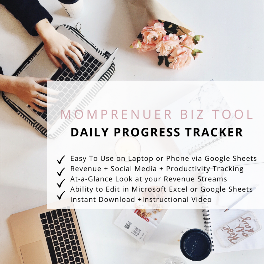This Daily Progress Tracker helps mompreneurs do just that. Instead of having to open up multiple apps / accounts / etc. this tracker allows you to see your progress data all in one place.